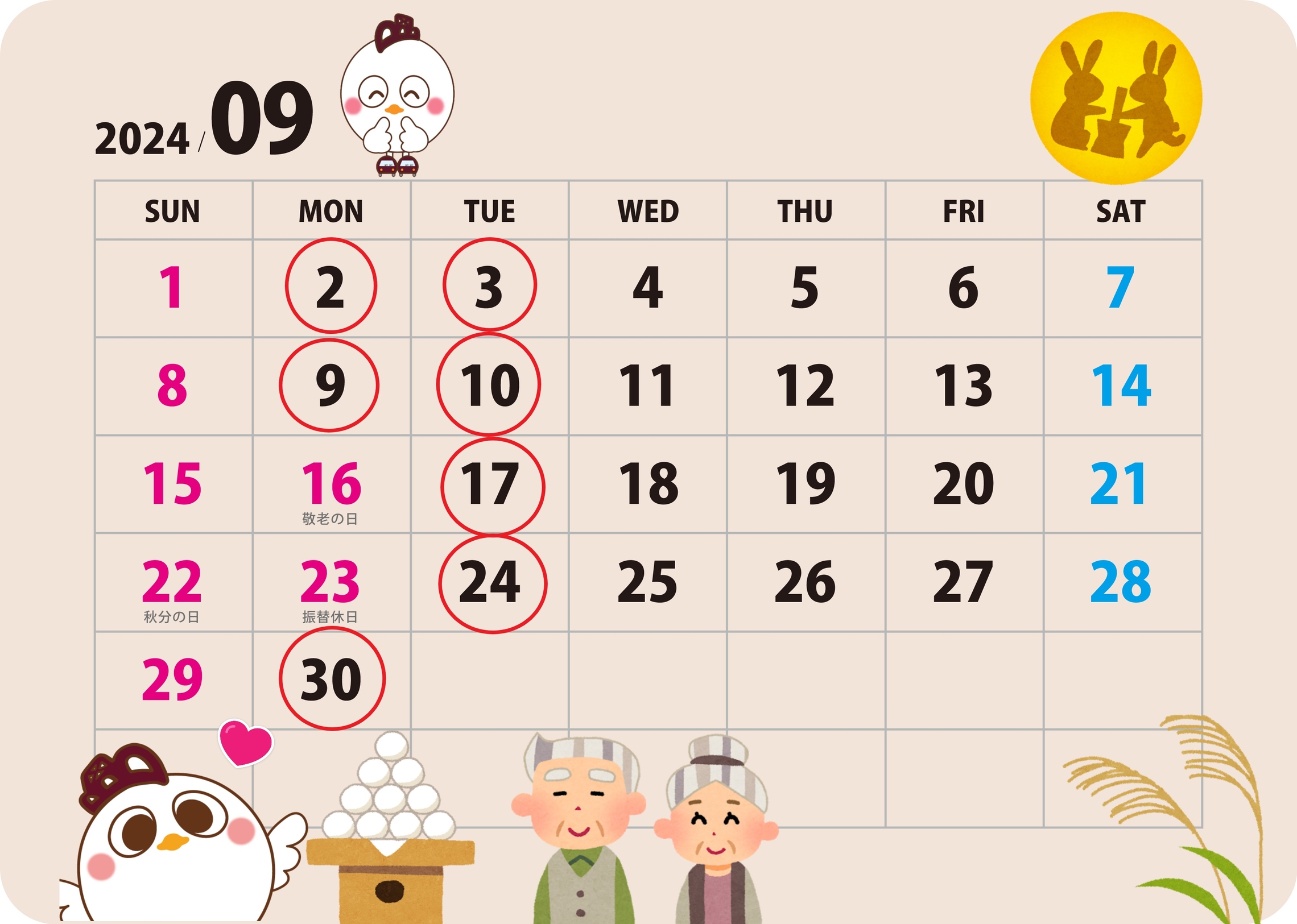 9月は祝日が16日の敬老の日と