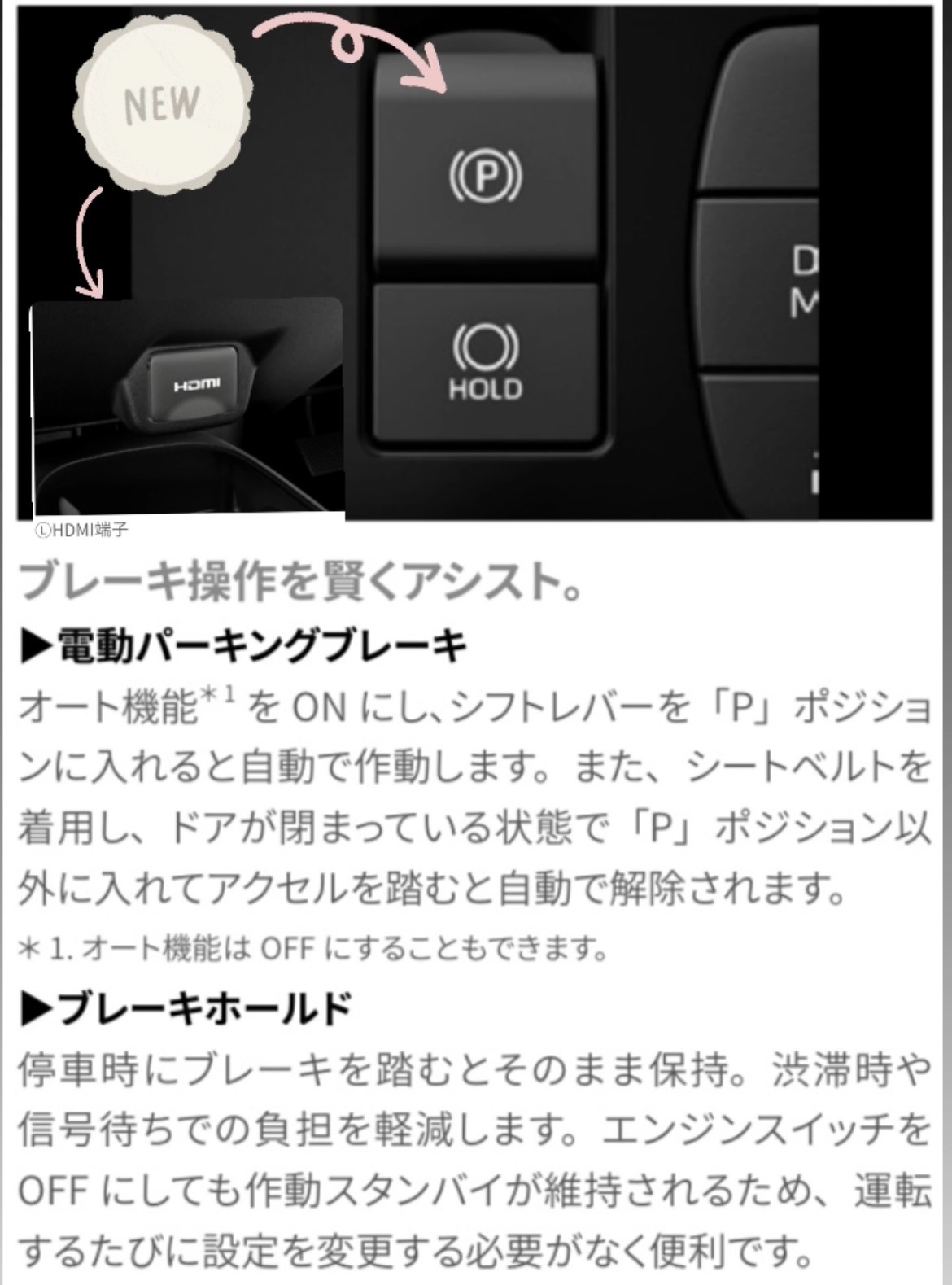 電動パーキングブレーキ・ブレーキホールド・HDMI端子が追加!!