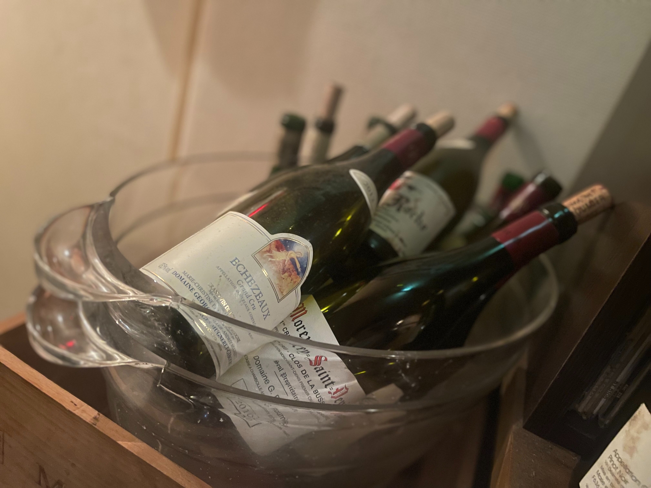 入ると、バーカウンターの横には、おすすめのワインがずらりと。
