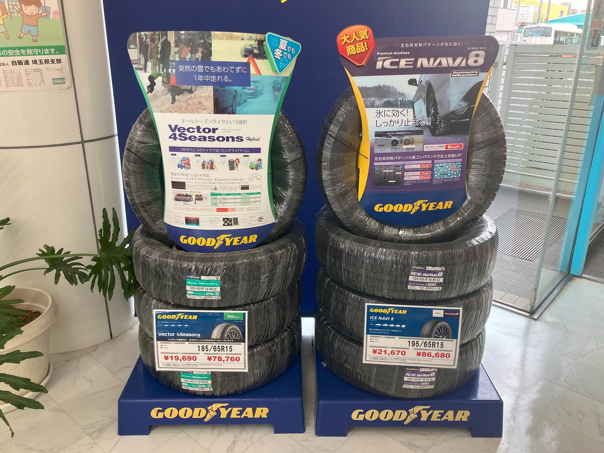スタッドレスタイヤは雪道⛄や凍結路面でも滑りにくいように設計されたタイヤです。ゴムが柔らかく、路面に密着しやすいのが特徴です。