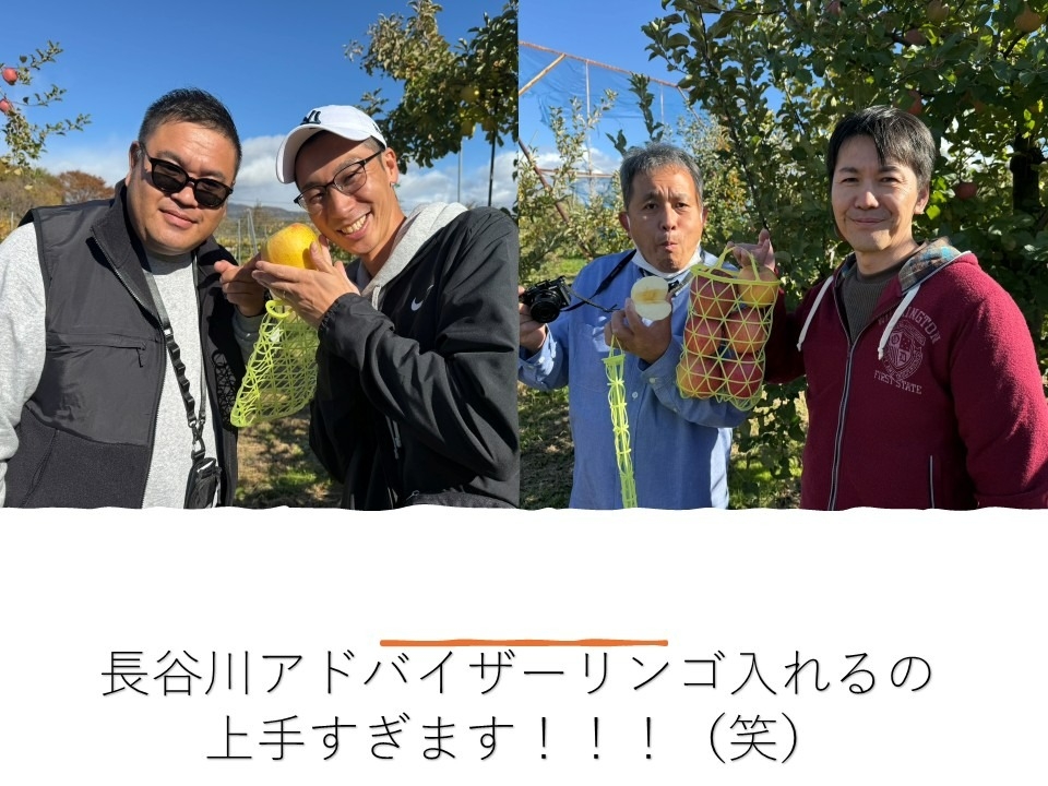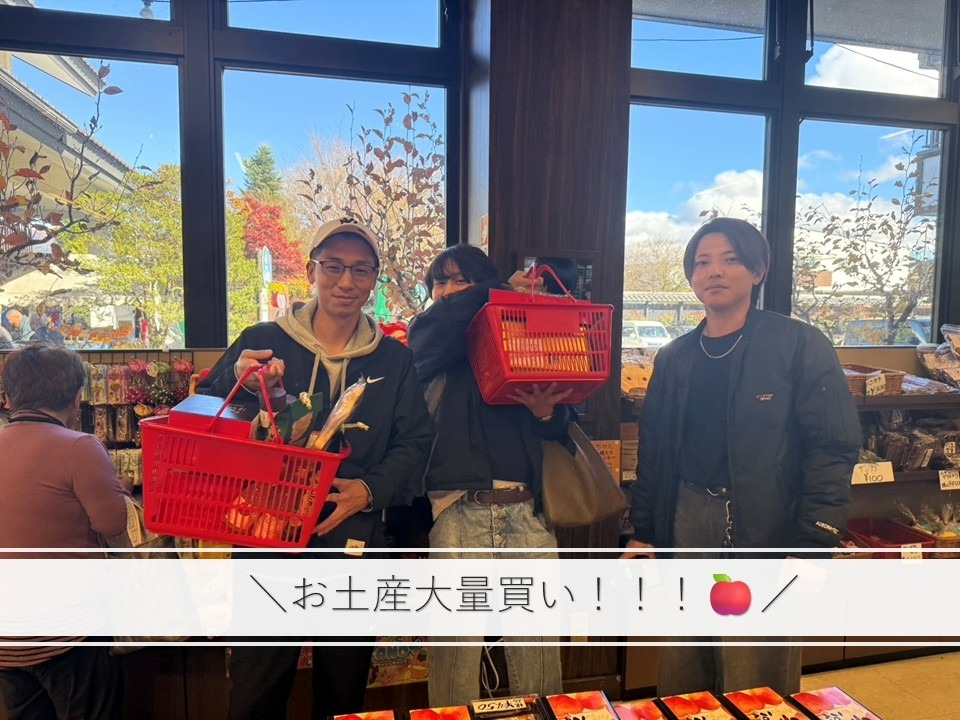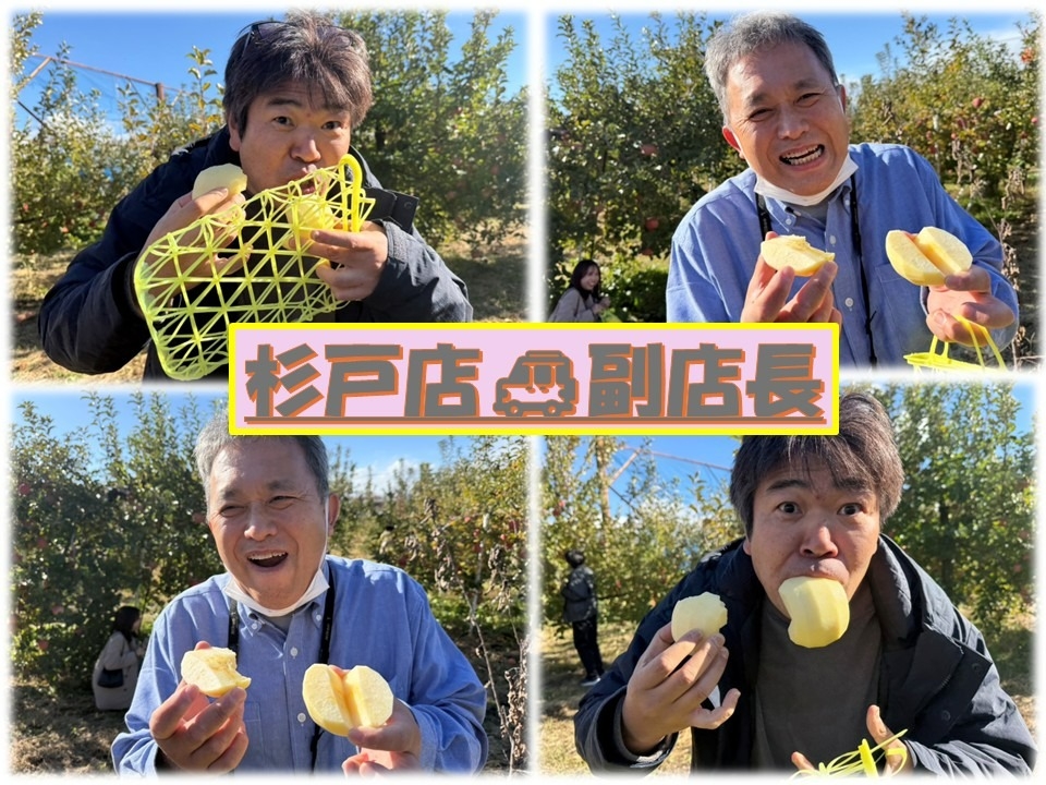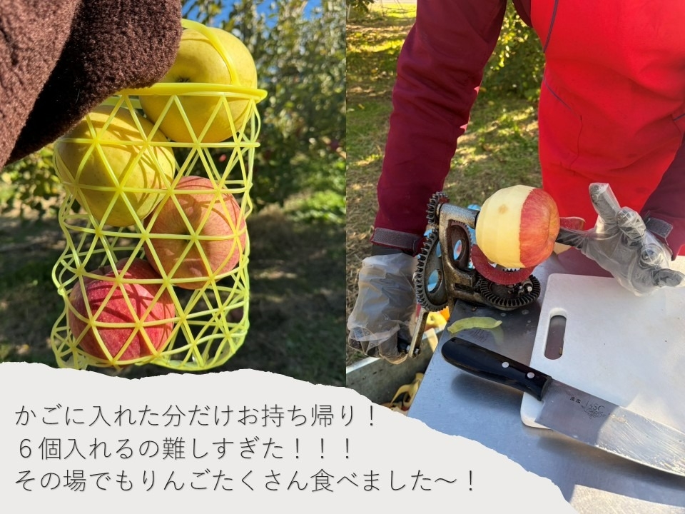 みんな黄色いかごを持って美味しそうなリンゴ🍏探し('◇')ゞ