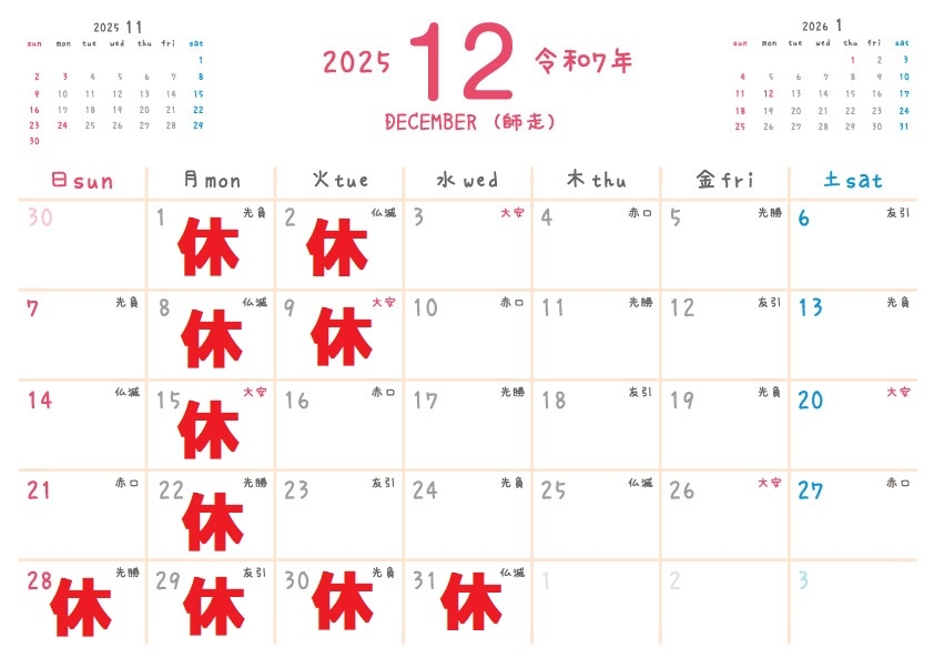 年末年始のお休みはまた次回、ご案内致します🙇🏽♀️