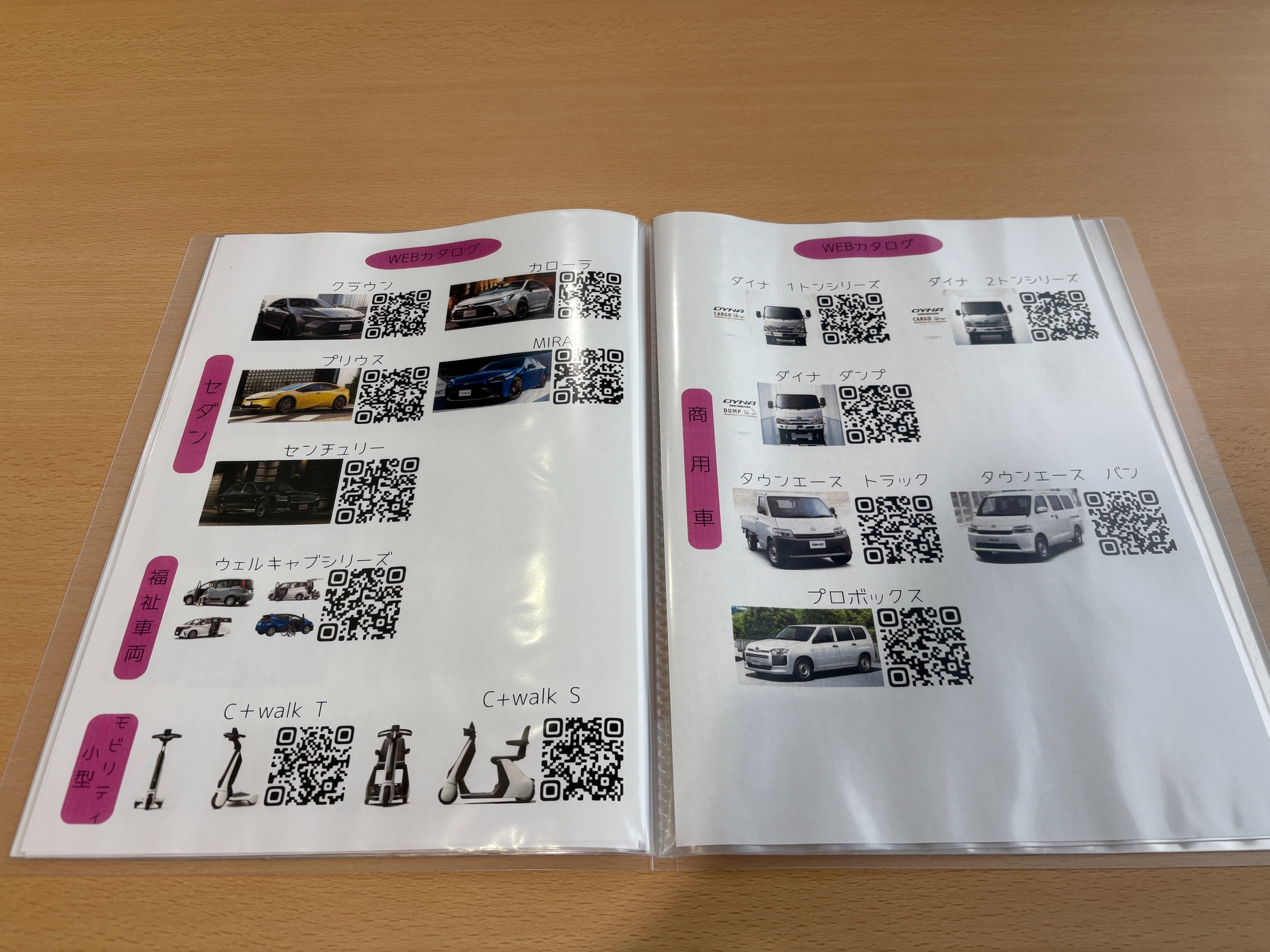 WEBカタログ用の二次元コードと車の画像を印刷したものをまとめました!!