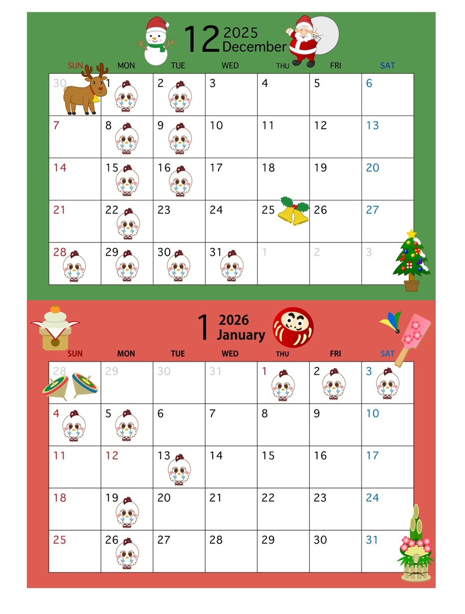 上記カレンダーの通り