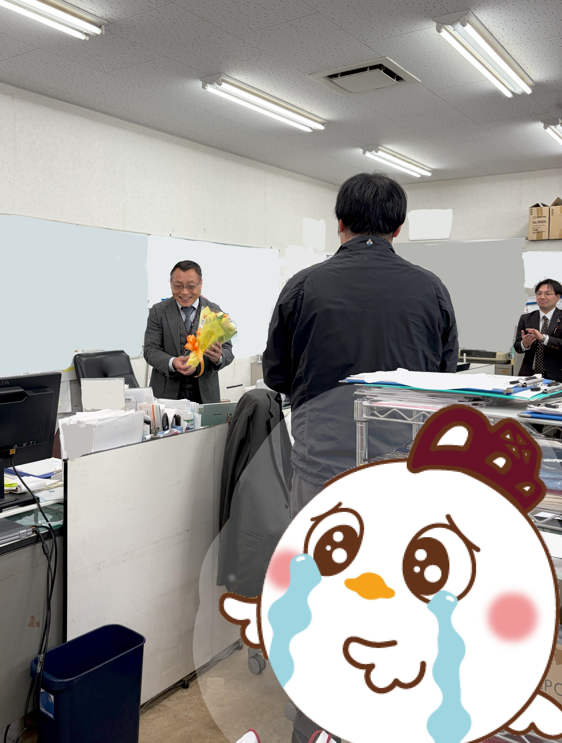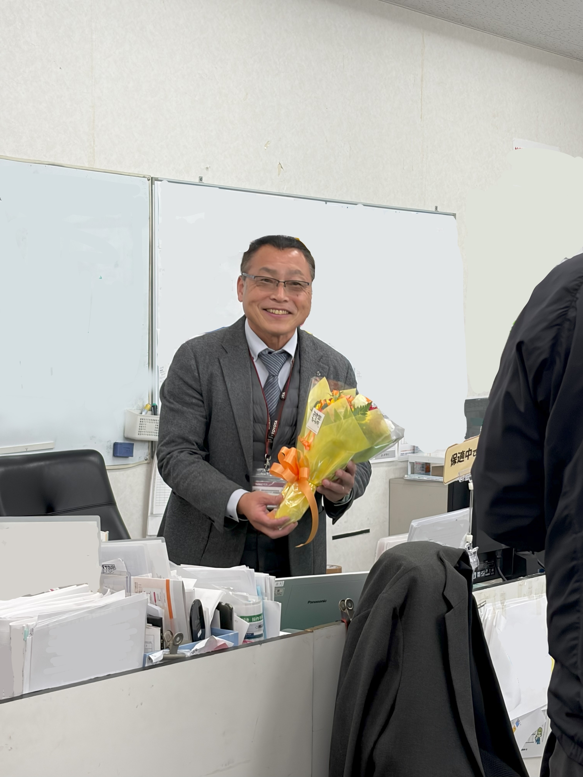 最終日にはスタッフ全員で花束をお渡しし、あたたかい雰囲気の中で門出をお祝いしました📷