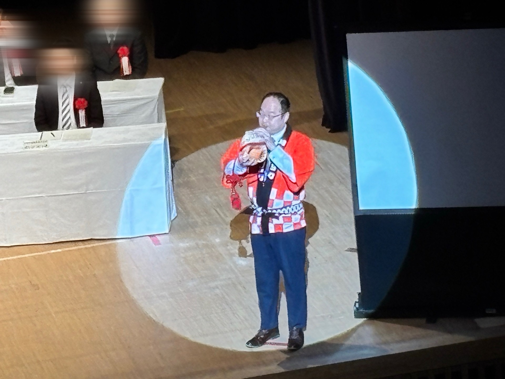 例年、開式に際して社員が代表して1人ほら貝を披露するのですが、