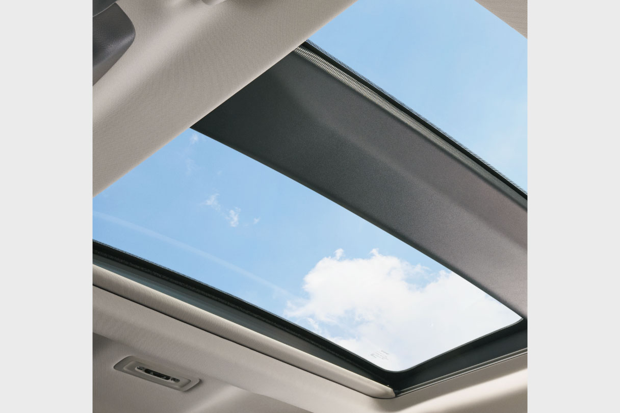 前席から後席まで、パノラマルーフが気持ちのいい開放感をもたらします。また、遮光性の高い電動ロールシェードが直射日光をガードし、さらに挟み込み防止機能付で開閉時の安全性にも配慮しました。