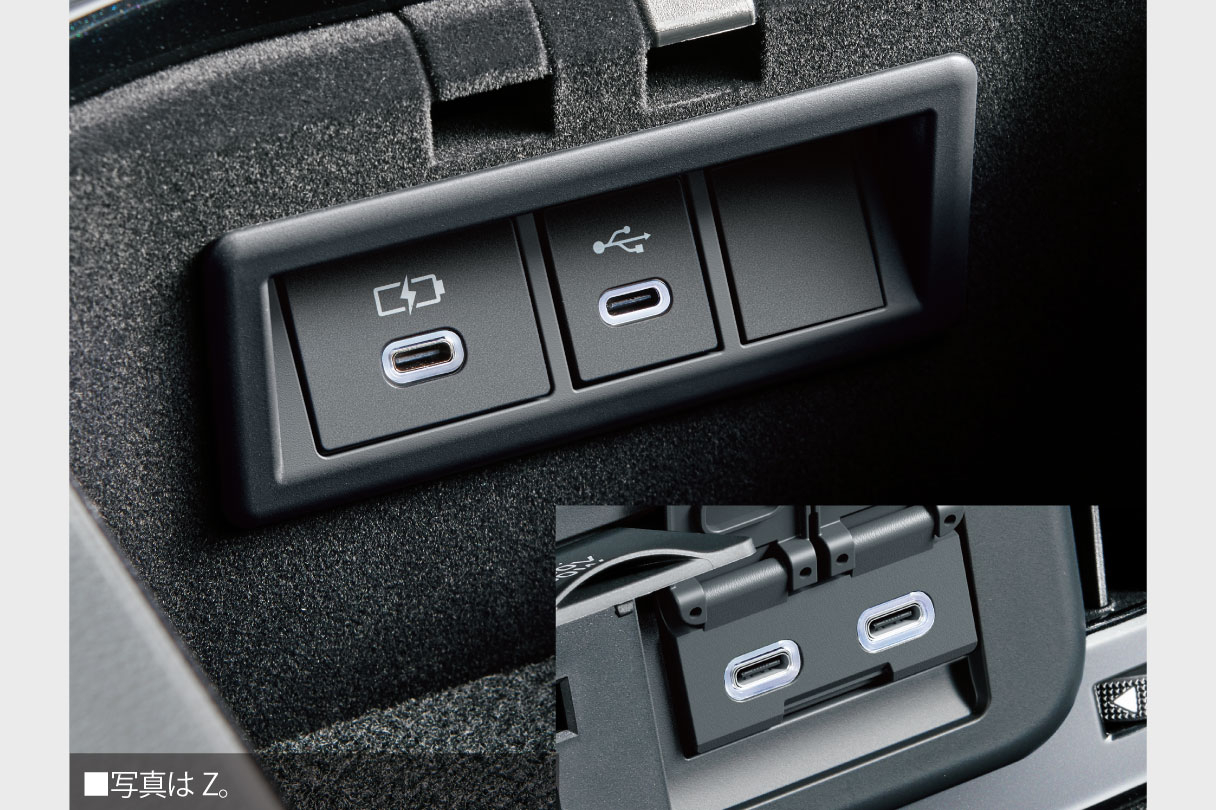前席に加え、後席にも2個のUSB端子を設定。スマートフォンやタブレットを気兼ねなく充電できます。