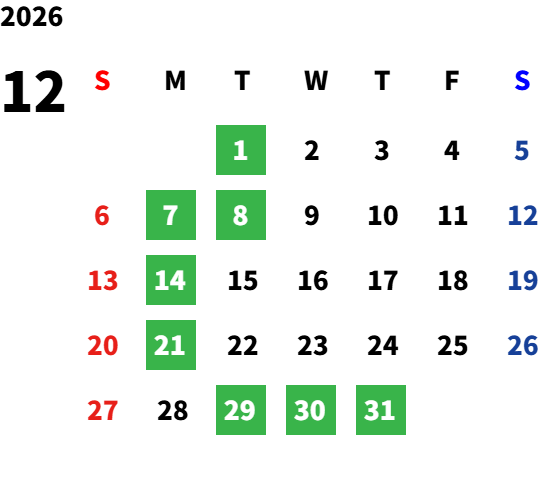 下記、営業日カレンダーをご参照ください